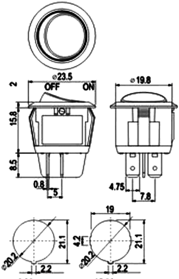 Rozměry montážního otvoru: průměr 20.2mm