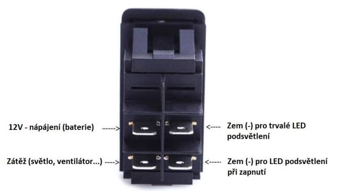 Kolébkový spínač s aretací v krajních polohách 30A/12V, 1x spínací kontakt