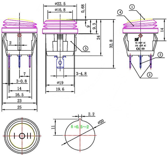 Způsob přepínání: ON-OFF-ON s aretací ve všech polohách