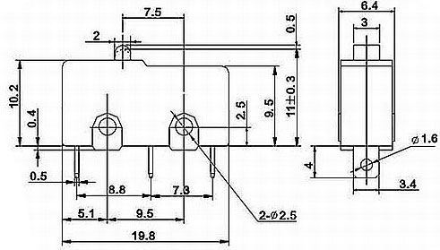 Rozměry tělesa: 19.8 x 6.4 x 10.2mm