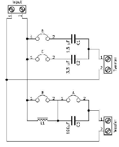 Výhybka pro reprobox 2-pásmová 4-8ohm/100W s korekcí.