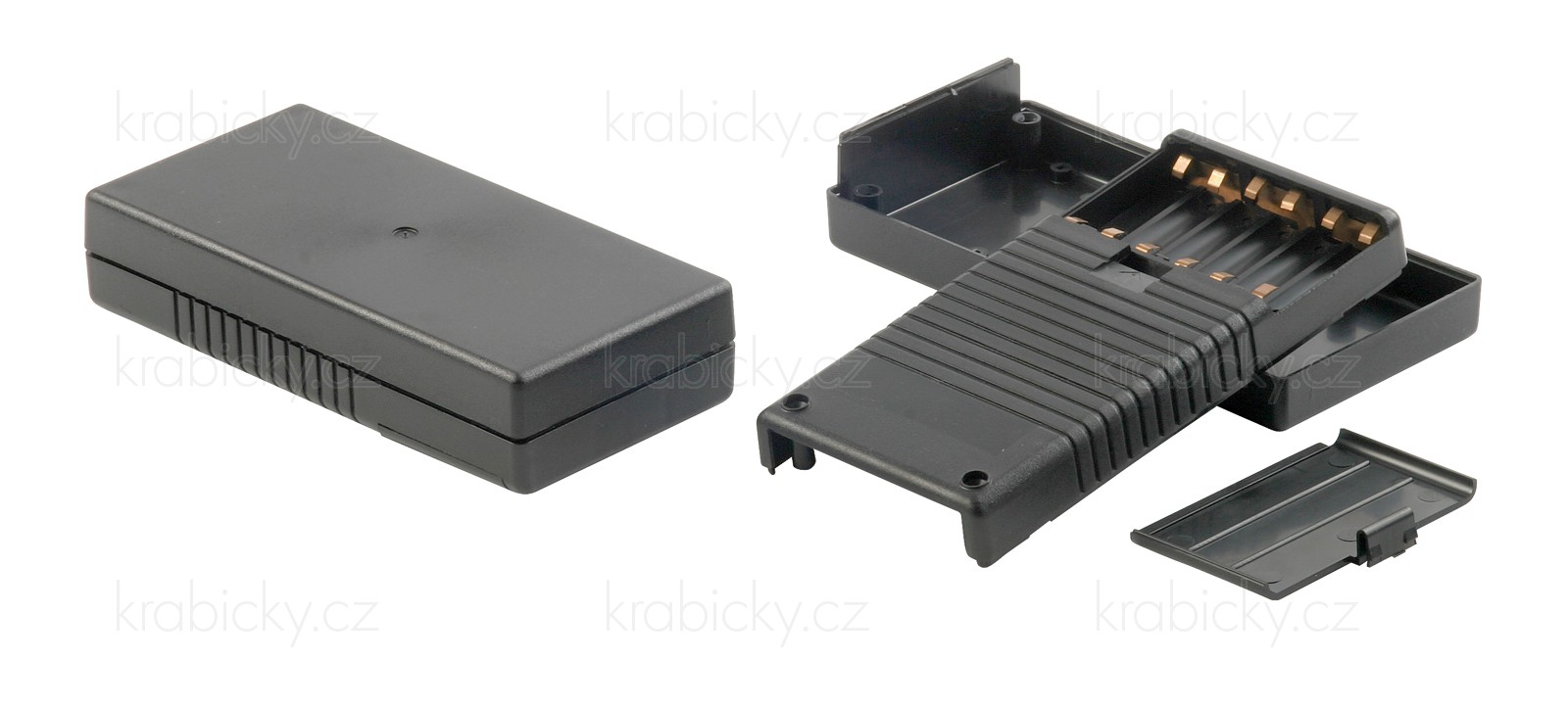 Plastová krabička s odděleným prostorem pro 6x AA tužkový článek.