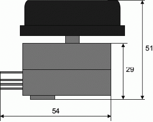 Orientační rozměry: délka vč. vývodů: 54mm, šířka 38mm, výška: 51mm.