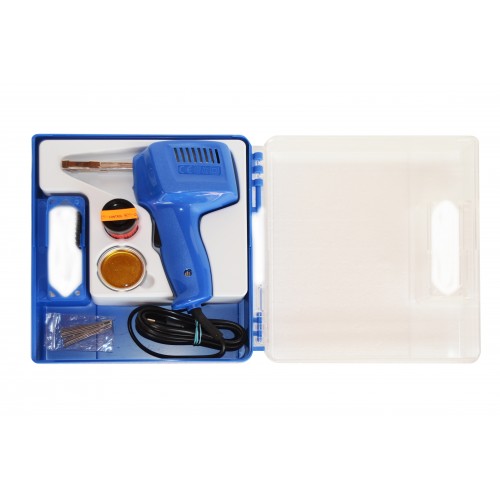 Balení obsahuje: pistolovou páječku, sadu 5-ti ks náhradních smyček, kalafunu a cínovou pájku.