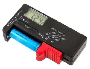 Ruční tester baterií a akumulátorů vhodný pro AAA, AA, C, D, 9V a knoflíkové baterie.