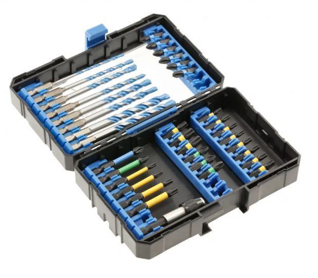 Sada navržená pro profesionály, obsahuje rázové bity a vrtáky pro práci s kovem.