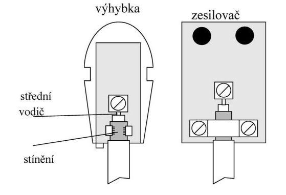 Připojení anténního kabelu šroubkem.