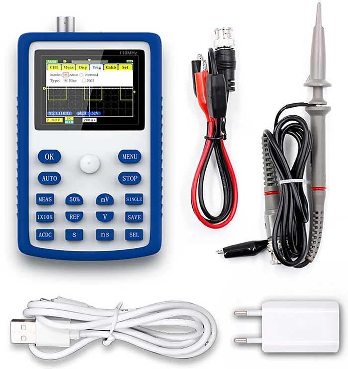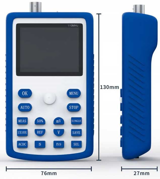 Osciloskop 110MHz je kompaktní a přenosný jednokanálový digitální osciloskop určený pro testování a analýzu signálů.