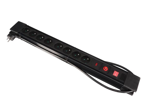 Prodlužovák PES s 8 zásuvkami a podsvětleným vypínačem.