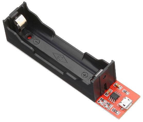 Nabíječka Li-Ion článku 18650 s volitelným nabíjecím proudem 0,3–0,5–0,8A.