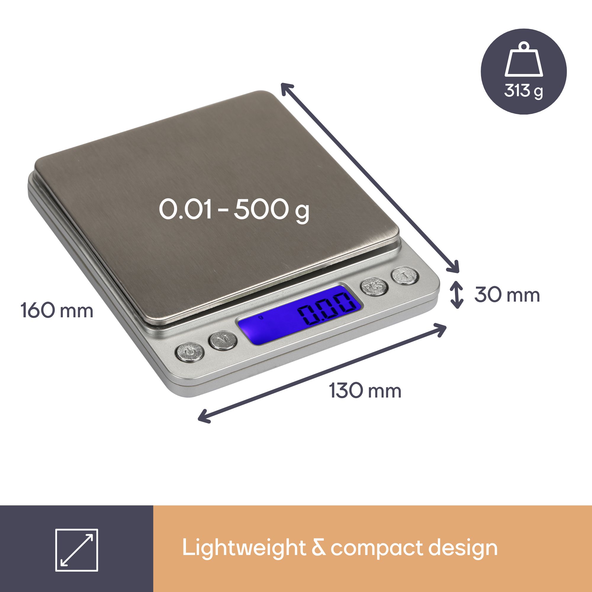 Přesná digitální váha 0,01 g až 500 g, funkce tárování, automatické vypnutí, LCD displej s podsvícením.