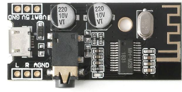 Bluetooth modul pro přenos audia s výstupem na sluchátka nebo zesilovač.
