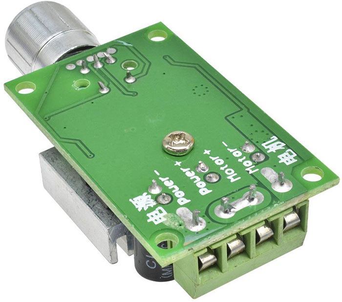 Impulsní PWM regulátor pro DC motory nebo LED světla a pásky. Bez zpětné vazby pro kontrolu nastavených otáček.