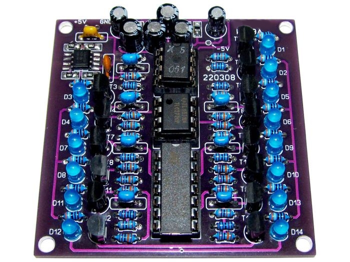 Stavebnice testeru operačních zesilovačů s měničem napětí -5V, částečně v SMD provedení.