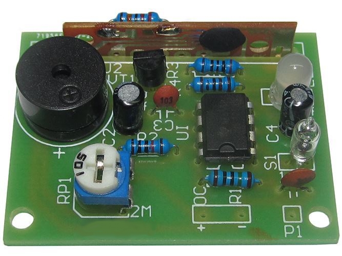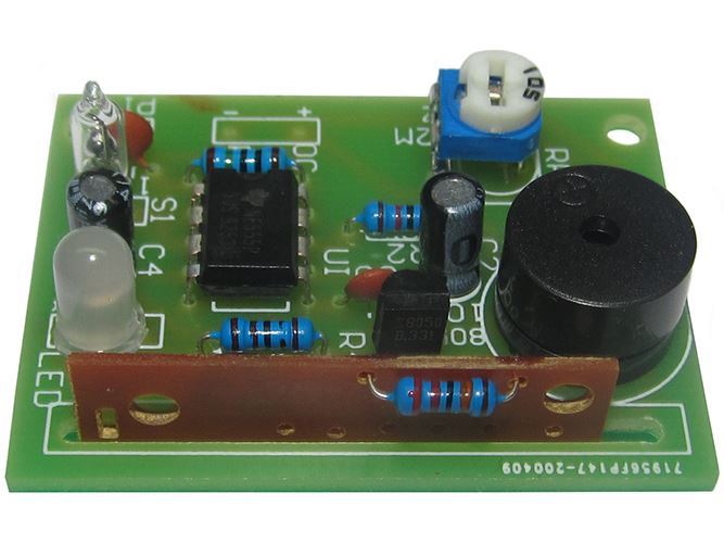 Alarm je realizován na jednostranném plošném spoji doplněným zvukovým modulem.