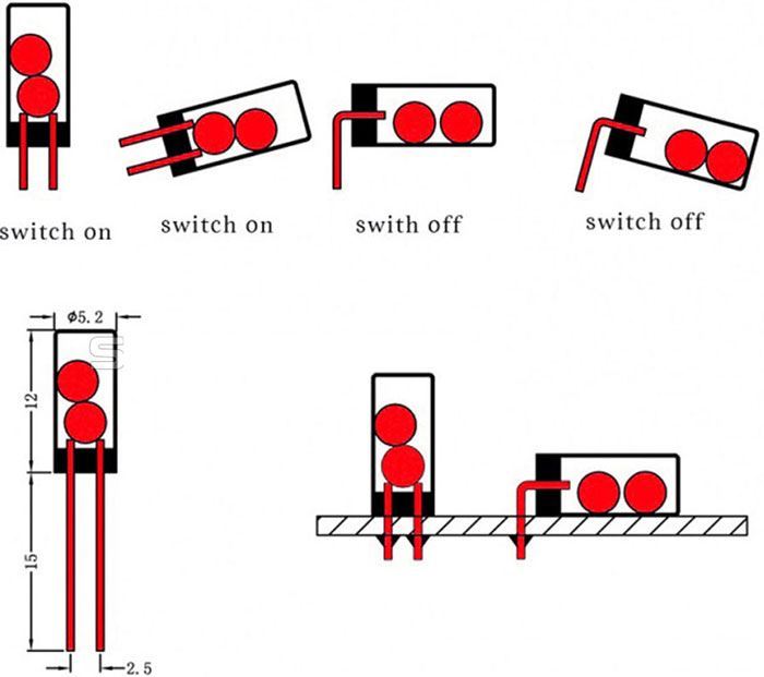 Modul senzoru náklonu je vhodný pro detekci změny z vodorovné polohy na svislou.