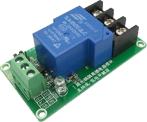 1 kanálový relé modul s optočlenem, napájecím napětím 24V a spouštěný signálem Log 0 nebo Log 1 (2-4mA).