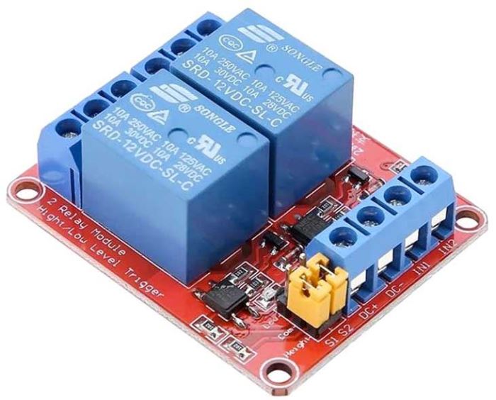 2-kanálový relé modul s napájecím napětím 12V s optočlenem, High nebo Low spoušť