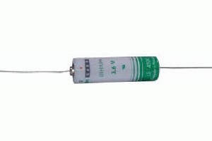 Lithiová baterie SAFT LS14500CNA s drátovými axiálními vývody.