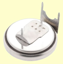 Lithiová baterie CR2450 s piny do plošného spoje (2+1) ležatá.