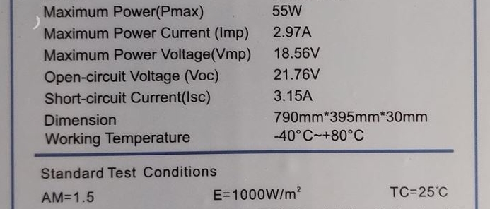 Max.napětí při zátěži 55W: Vmp=18,56V