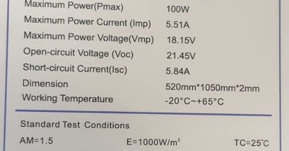 Max.napětí při výkonu 100W: Vmp=18,15V