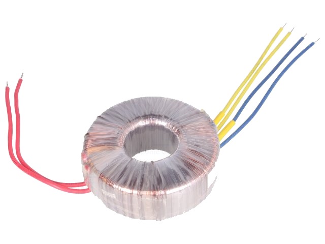 Toroidní transformátor 100VA 230VAC/2x19VAC-2.63A, volné dráty.