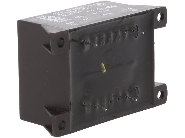 Transformátor 16VA, 230VAC/6VAC-2.66A, zalitý, piny do plošného spoje