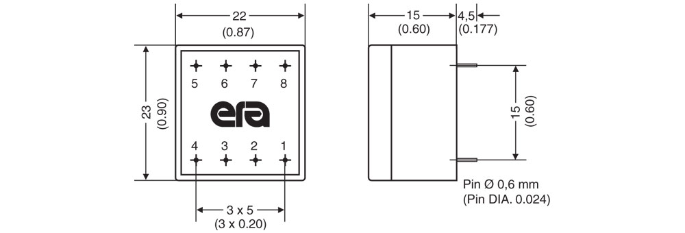 Transformátor 0.35VA, 230VAC/2x12VAC-29mA, zalitý, piny do plošného spoje