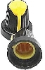 Plastový přístrojový knoflík s ukazatelem pro potenciometry s drážkovanou hřídelí.